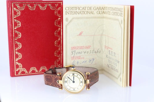 Genuine Cartier Watch. Must de Cartier Vendome Round Argent Vermeil Cream Gold