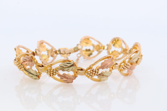 Black Hills Gold Bracelet. 10k Multi-Tone Black Hills Gold Bracelet. Heavy 10k 12k Grape Leaf Bracelet.