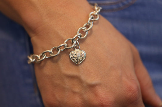 Black Hills Gold Bracelet. STERLING SILVER with 10k Multi-Tone Black Hills Gold. Large Cable with Heart charm.