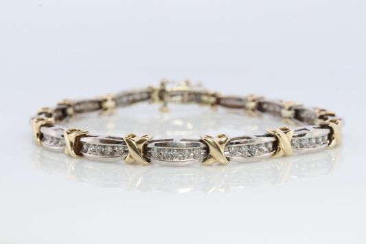 10k Diamond XOXO Bracelet. 10k Yellow White Gold Kiss Hug Diamond Bracelet.