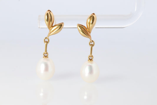Mikimoto Earrings. 18k Gold Mikimoto Pearl Dangle Earrings. Unpierced Clip on