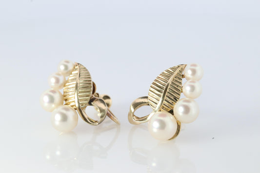 Mikimoto Earrings. Vintage 14k Gold Mikimoto Pearl cluster Clip Ons. Unpierced