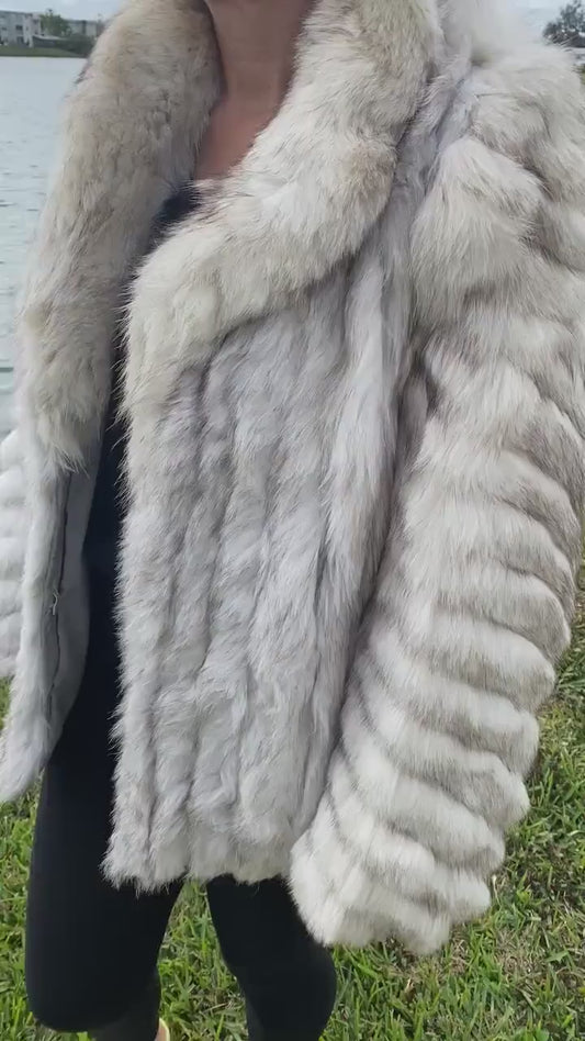 Saga Furs BLUE ARCTIC Natural FOX Fur Coat Jacket