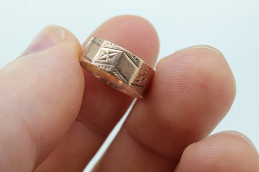10k Wide Cigar band. Vintage Embossed flower floral design. 6mm sz6.75 st(82)