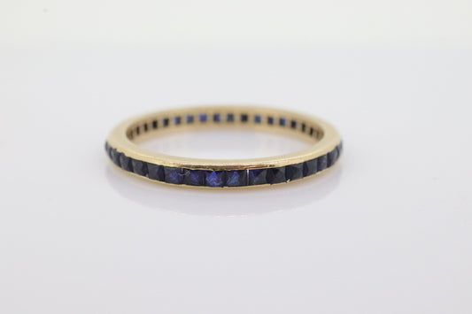 14k Gold BLUE Sapphire Full Eternity Thin Band. Thin Channel Set Princess Sapphire calibre cut Full Eternity band. st(110)