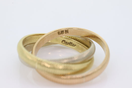 Vintage CARTIER 18k Tricolor Rolling Ring. Cartier Ribbed Triple Ring. Interlocking ring. Russian Wedding ring. 18k Rolling Band.
