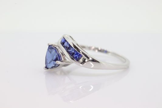 Trillion Sapphire and Diamond ring 10k white gold. 10k Triangle Blue sapphire ring. Princess Sapphire. st(62)