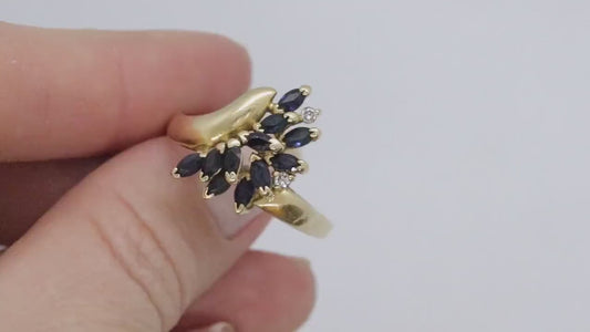 14k Sapphire Diamond Bypass ring. 14k Marquise Sapphire Flower Branch Vine cluster ringRegular price $325.00 USDRegular priceUnit price per-