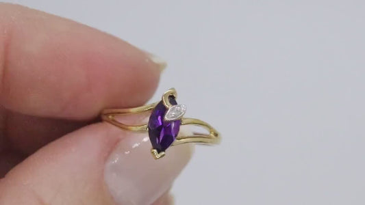 Marquise Amethyst 10k Gold ring. Amethyst and diamond Ring.Regular price $155.00 USDRegular priceUnit price per-