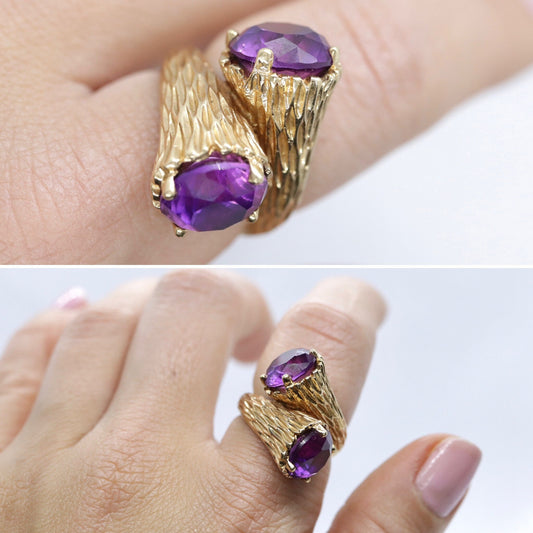 14k Purple Sapphire Toi et moi bypass ring. 14k Heavy Fur / Log Design st(340/50)Regular price $1,350.00 USDRegular priceUnit price per-