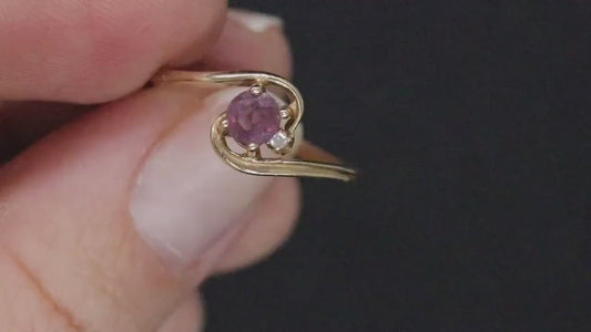 Dainty Ruby Ring. 10k round Ruby and Diamond Bypass ring