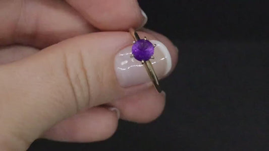 Amethyst 14k Gold solitaire ring. Vintage Estate Ring. Prong set Amethyst Ring.