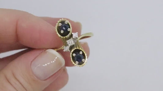 14k Sapphire Diamond Bypass ring. 14k Sapphire Flower Cones Vine cluster ring