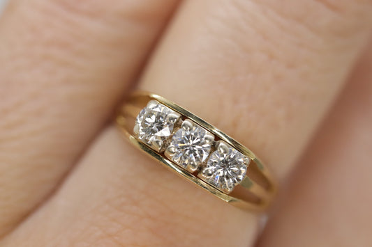 14k Diamond trio ring. TRILOGY 3 stone Diamond 1/2ctws Ring. Engagement Ring. Solitaire ring.