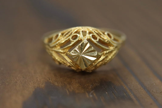 Filigree diamond cut 14k Yellow Gold ring. 14k precious open scroll ring
