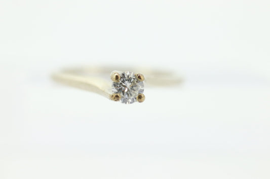 14k White Gold Bypass Diamond 0.20ct Certified Solitaire Engagement Ring. Appraisal included. Wedding ring, Diamond Engagement for women