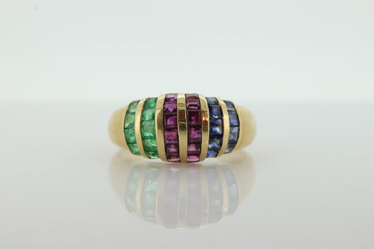18k Emerald Ruby SAPPHIRE Bombe Dome band. 18k Yellow Gold Princess Channel set round Bombe Dome ring. st(196)