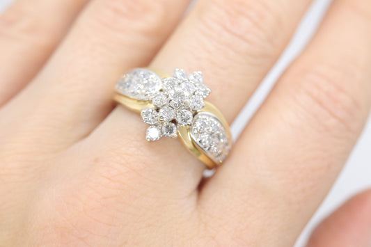 14k Yellow Gold Ring. Round Diamond Cluster Ring. Waterfall diamond. 1.75ctw diamonds