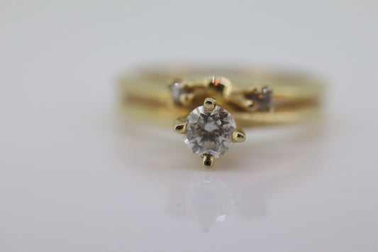 14k Bypass Diamond Solitaire Double Ring. 14k STARFIRE Solitaire Wedding or minimalist set. st(127)