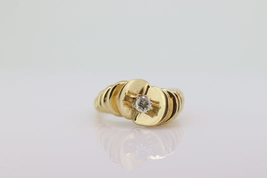 14K Diamond Bypass ring. Lobster Tail Sfogliatella Croissant Pastry Ring. Toi et moi band. Yellow Gold ring. st(92)