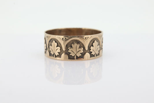 Antique 10k Wide Cigar Embossed band. Antique Cigar Rose Gold Vintage Embossed Maple Oak Leaf design. 7mm sz7.75 st(121)