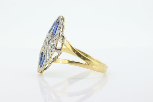 Shield Diamond Sapphire ring. 18k diamond and sapphire shield ring. 18k Art Deco diamond filigree signet ring. st(140)