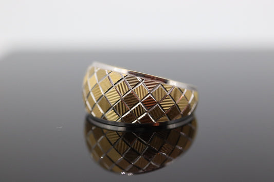 Textured Wide Dome 18k Yellow White Gold Band. 18k Engraved Textured Diamond Cut ring. st(155)