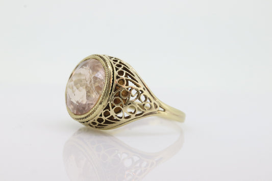 Antique 14k Gold Art Deco Morganite ring. Natural Morganite bezel set filigree ring. st(105)