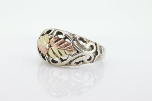 Black Hills Gold Sterling Silver dome Ring. Large 10k Gold Inlay made by Black Hills Gold Band