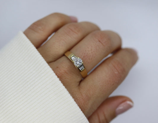 0.60ct Diamond Solitaire 14k ring with baguette accents. 14k Wedding band or Engagement ring.