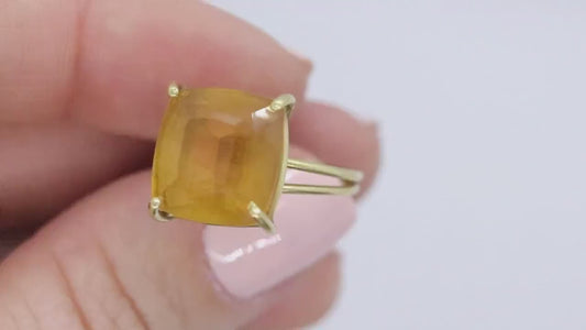 Großer orangefarbener Citrin-Ring. Schwerer runder Citrin aus 18-karätigem Gelbgold mit großer Krappe