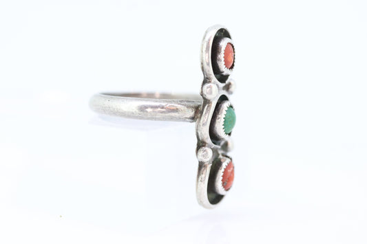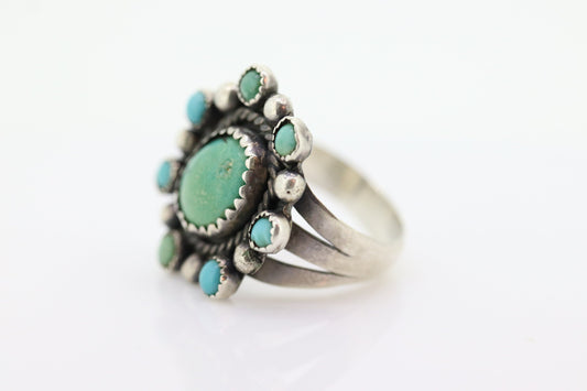 Zuni Navajo Sterling Silber Ring. Türkisfarbener Ring mit Cluster-Lünette. St(10)