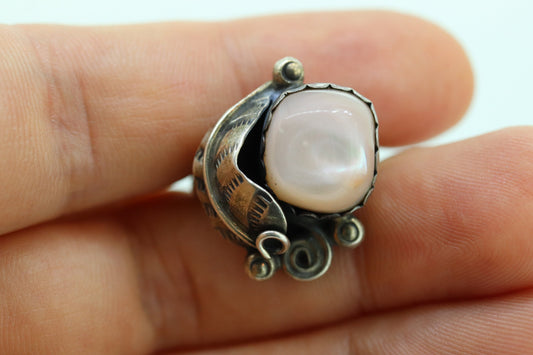 Zuni Navajo Sterling Silber Ring. MOP Perlmutt-Lünette-Set-Ring. St(10)