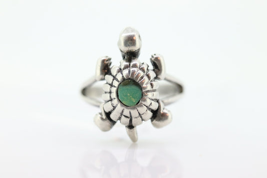 Zuni Navajo Schildkröte Schildkröte Sterling Silber Siegelring. Schildkröten-Türkis-Bezel-Set-Ring. St(10)