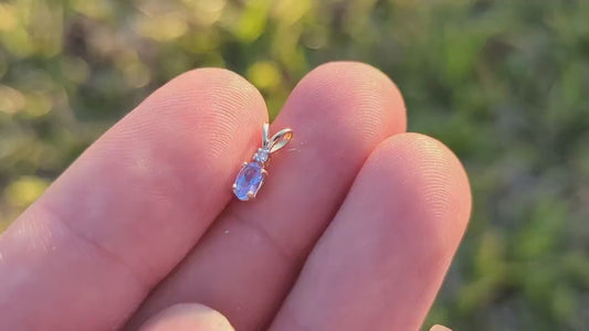 Anhänger aus 14 Karat Tansanit und Diamant. Zierlicher ovaler Tansanit-Solitär-Anhänger. M(50)