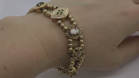 14-karätiges viktorianisches Charm-Slide-Armband. Rubine, Diamanten, Topas, Kamee, Smaragde, Citrin. 22,9g