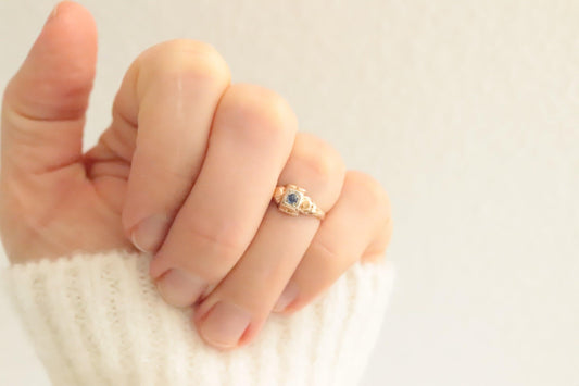 Art Deco Sapphire Ring. 10k Antique square setting ring.