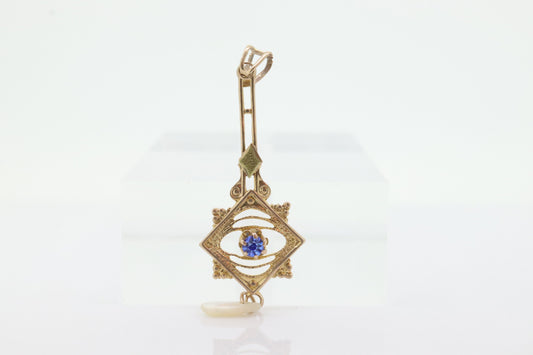 Jugendstil-Saphir und Perlmutt-Butterblume, 10 Karat Gold, Lavaliere st(80)