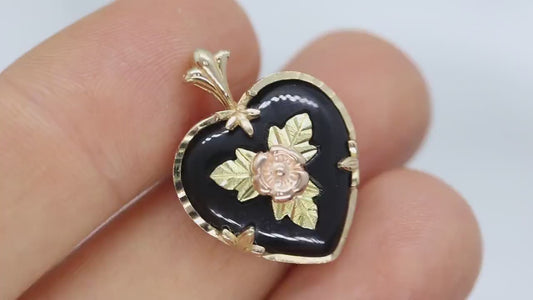 Black Hills Goldanhänger. 10-karätiger Herz- und Onyx-Black-Hills-Goldanhänger st(63/25)