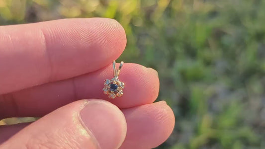 Blauer Saphir- und Diamant-Halo-Anhänger. 14-karätiger, kostbarer, zierlicher Saphir-Anhänger. M(50)