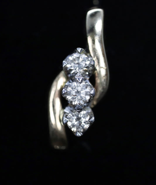 14-karätige Diamant-Ohrringe. 3-Stein-DIAMANT-Bypass-Ohrhänger