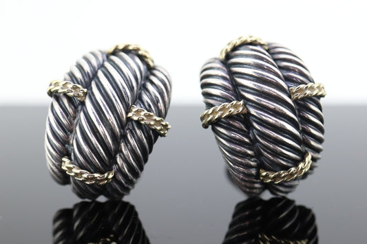 Schwere CABLE-Ohrringe aus Sterlingsilber und 14-karätigem Gold von David Yurman. NICHT durchbohrte Clip On David Yurman Ohrringe st(100)