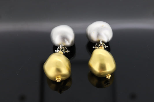 Roberto Coin Tropfenohrringe aus 18 Karat Weiß- und Gelbgold. Perl Amore Puffohrringe. Roberto Coin Pearl Amore Kollektion. (366)