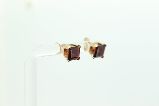 Prinzessin GARNET 14k Gold Ohrstecker. Quadratische Granat-Ohrstecker. (st67)