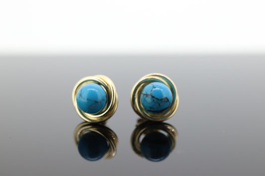 14-karätige Türkis-Ohrstecker mit runden Perlen. Türkise Kugel-Ohrringe. ST(25)
