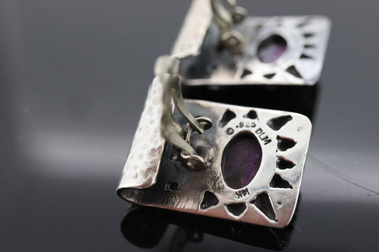 Dian Malouf Ohrclips zum Anklipsen. Lila Achat-Cabochon-Ohrringe aus schwerem Sterlingsilber und 14-karätigem Gold, modernistische Ohrringe aus der DLM-Kollektion (st122)