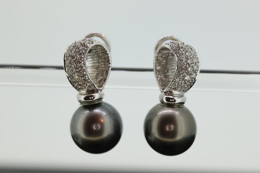 Tahiti-Perlenohrringe. 18 Karat große schwarze TAHITIAN-Perlen mit Pavé-Diamanten, nicht durchbohrt, Ohrclips. - st(732)