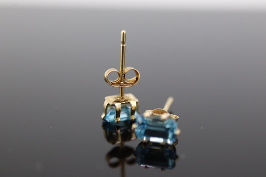 Ohrstecker aus 14 Karat Blautopas im Rechteckschliff. Zierliche Blautopas-Ohrstecker. M(40)