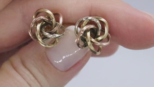 14-karätiger LOVE-Knoten-Ohrring. Dreifarbige KNOT-Ohrringe aus Gold mit Knoten.
