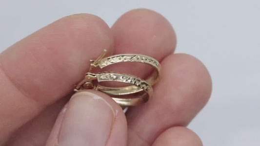 Vintage 14-karätige Gelbgold-Puff-Hohlohrringe. Jacmel Creolen mit Gravur. st25/30